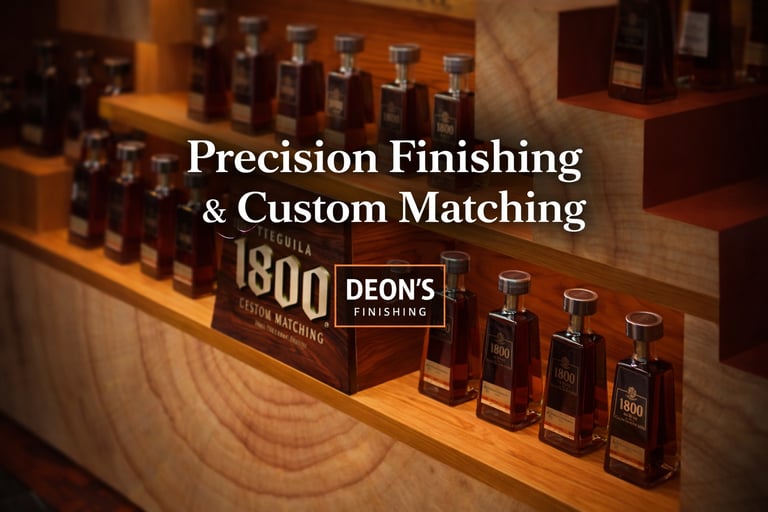 Specializing in colour matching, glazing, stain making, antique finishes such as gold & silver leafing. From airport retail units to custom installations. , Deon’s Finishing delivers consistent, high-end results built to last in demanding environments.